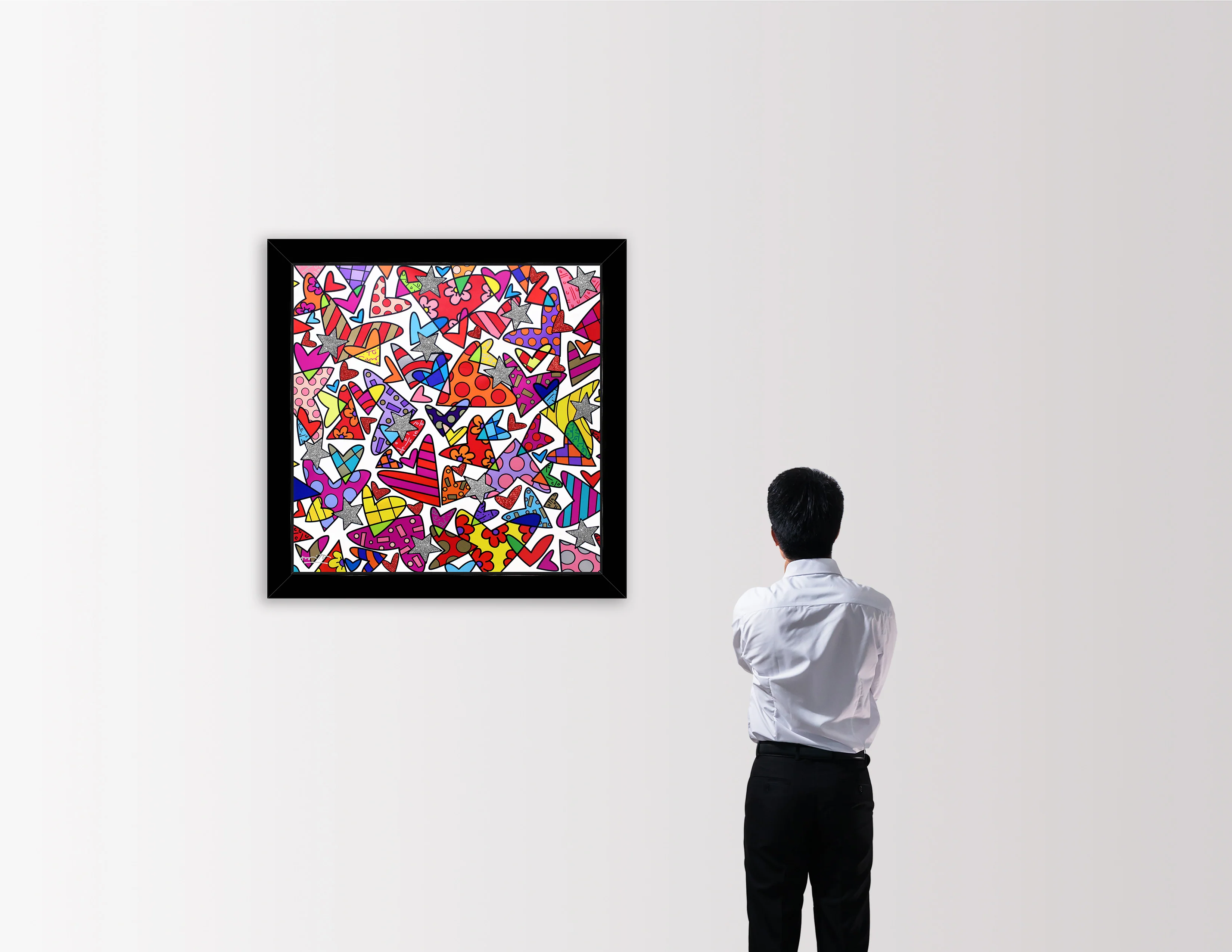 Cloud Nine embodies a sense of pure joy, optimism, and emotional elevation, captured through Romero Britto’s signature use of bold color, graphic pattern, and expressive linework. The balanced square composition radiates harmony and positivity, inviting the viewer into a world of lighthearted celebration and happiness. Accented with shimmering Diamond Dust, the artwork sparkles with energy and movement, reflecting Britto’s enduring message that joy is vibrant, contagious, and meant to be experienced fully.