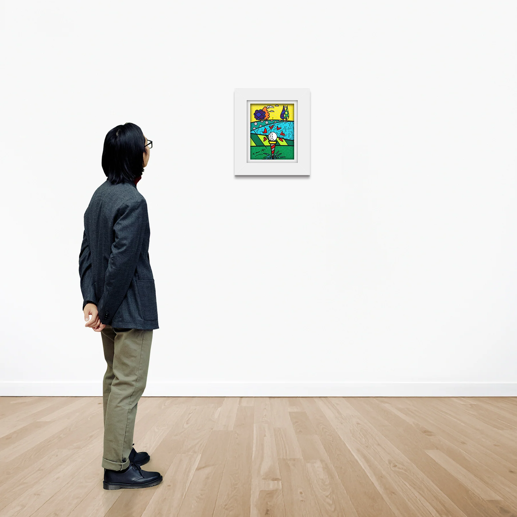 Love Golf celebrates the joy, passion, and optimism found in the game of golf. With bold outlines, vibrant colors, and playful patterns, Romero Britto transforms a classic sport into a cheerful expression of love and energy. The diamond dust embellishments add a subtle shimmer, enhancing the artwork’s lively movement and upbeat spirit.
