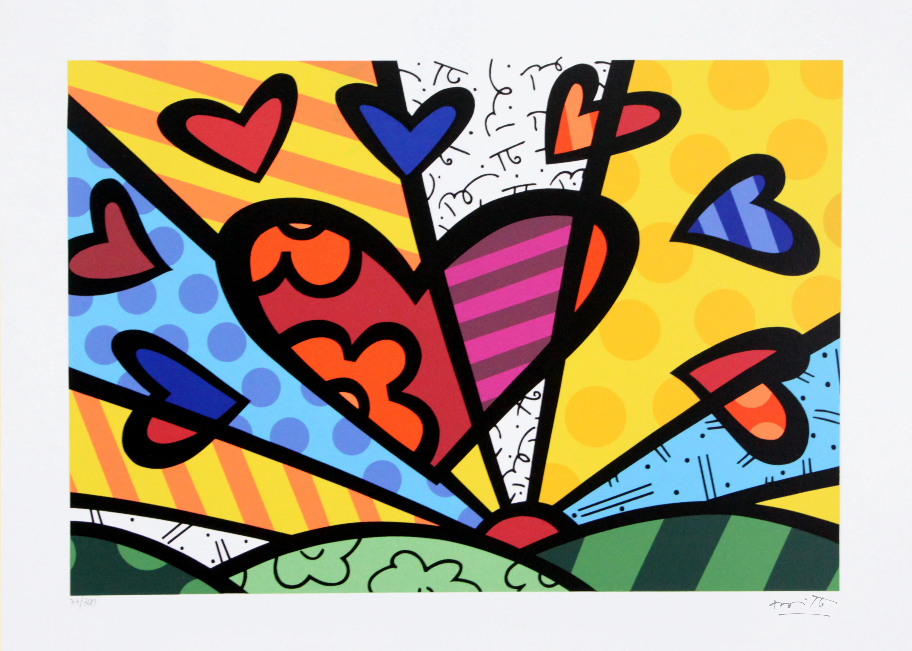 Serigraph Titles: 'A New Day', 'Downtown Girl', 'Butterfly', 'Happy Cat & Snob Dog', 'Penelope of Modern Day', 'Deeply in Love', Squeaki Van Britto', 'Sleep Well', 'Roses View', and 'Celebration'.